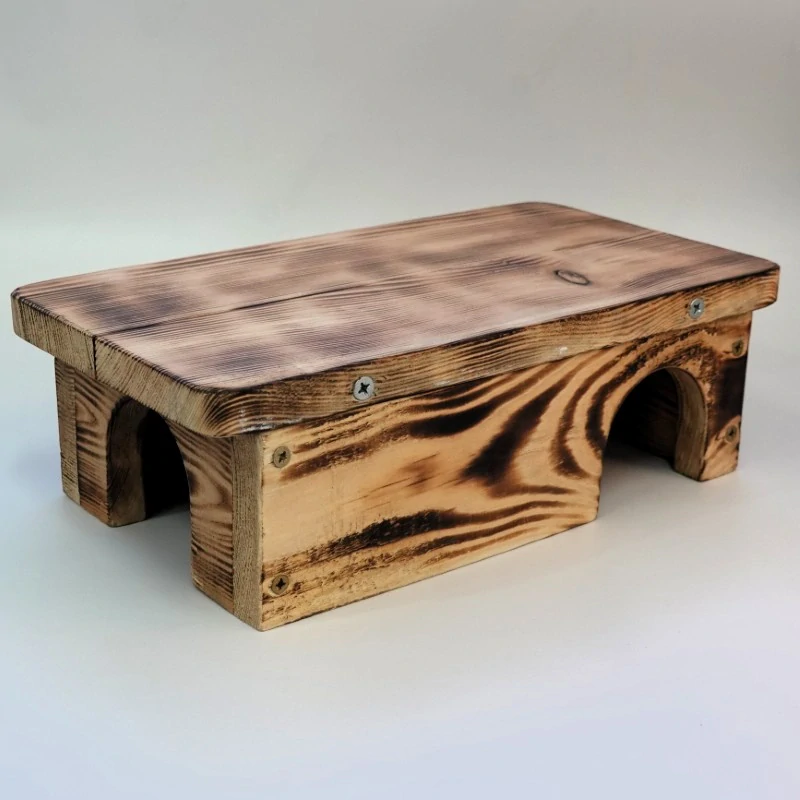 - Domeček je vyroben z masivního (plného) dřeva, což zaručuje jeho bezpečnost pro okusování mazlíčky.
