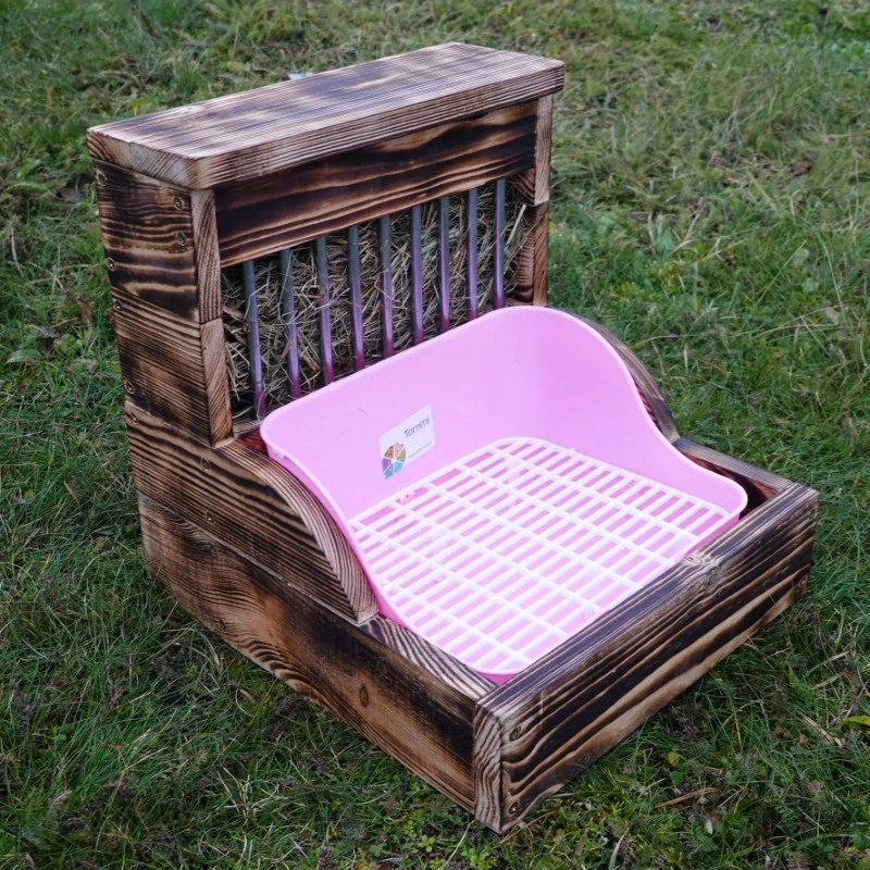 Dřevěný masivní seník se záchůdkem vhodný pro králíky, morčata a činčily.